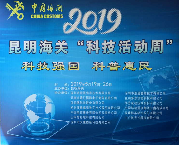 2019昆明海關“科技活動周”科技展于5月20日至5月26日在昆明海關一樓大廳正式開啟。本次活動周圍繞“科技強國、科普惠民”的主題,通過展板、展臺、體驗式交互等方式,對科技創(chuàng)新助力云南口岸通關便利化的發(fā)展歷程、重大成果以及未來規(guī)劃進行了展示?;顒蝇F場航通展出了所開發(fā)的云卡口系統(tǒng)等智能化軟硬件設備、全景業(yè)務監(jiān)測平臺、跨境電商解決方案以及邊民互市貿易申報系統(tǒng)等全套解決方案。